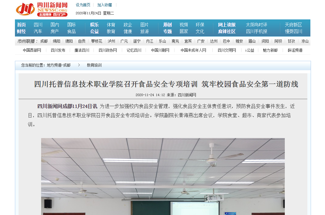四川新闻网 | 四川托普信息技术职业学院召开食品安全专项培训 筑牢校园食品安全第一道防线