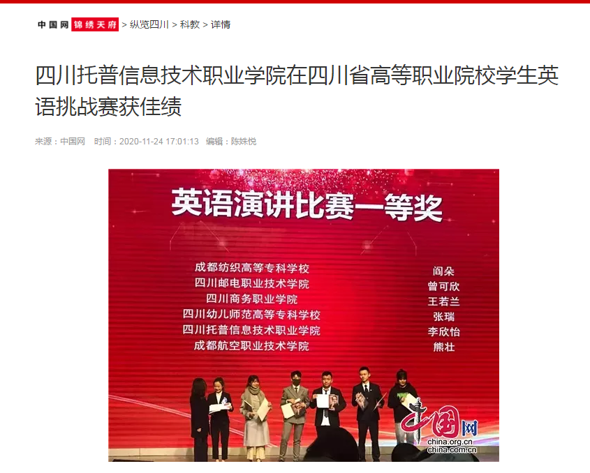 中国网锦绣天府 | 四川托普信息技术职业学院在四川省高等职业院校学生英语挑战赛获佳绩