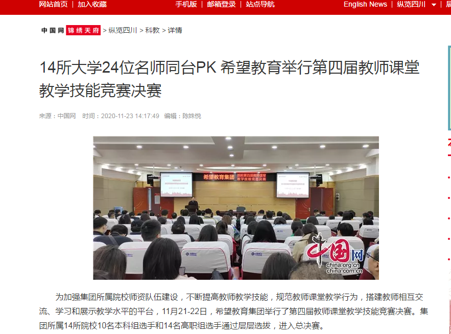 中国网锦绣天府 | 14所大学24位名师同台PK 希望教育举行第四届教师课堂教学技能竞赛决赛