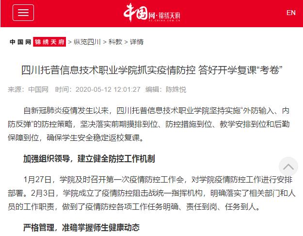中国网锦绣天府 | 四川托普信息技术职业学院抓实疫情防控 答好开学复课“考卷”