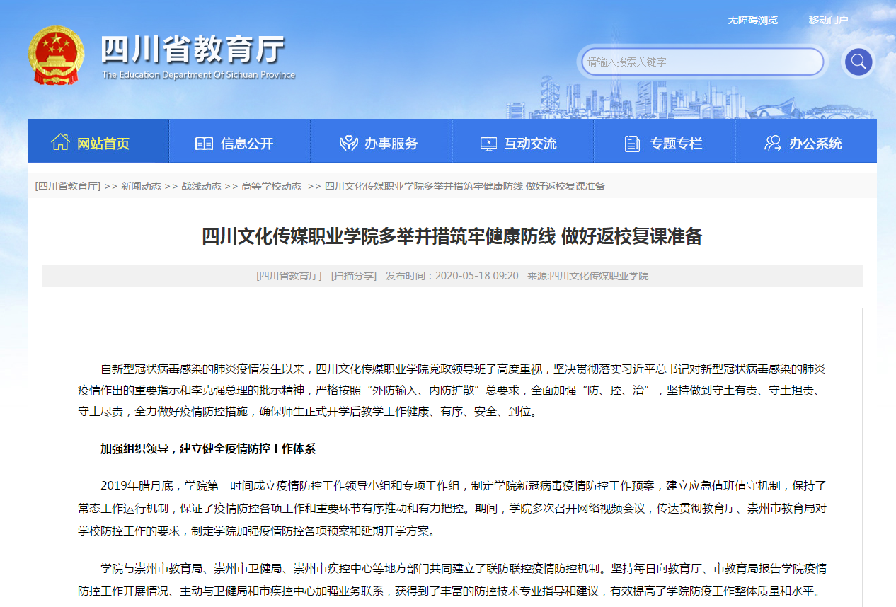 四川省教育厅 | 四川文化传媒职业学院多措并举筑牢健康防线 做好返校复课准备
