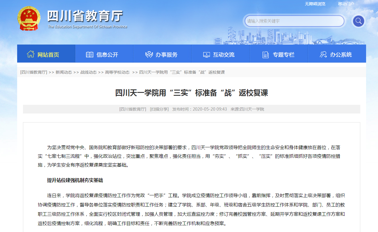 四川省教育厅 | 四川天一学院用“三实”标准备“战”返校复课
