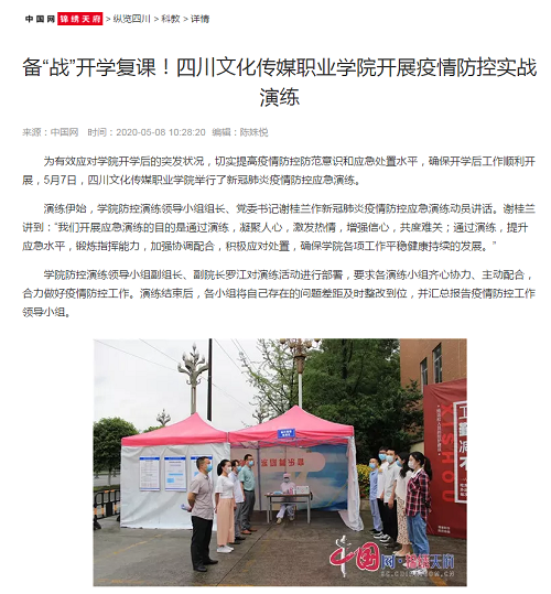 中国网锦绣天府 | 备“战”开学复课!四川文化传媒职业学院开展疫情防控实战演练