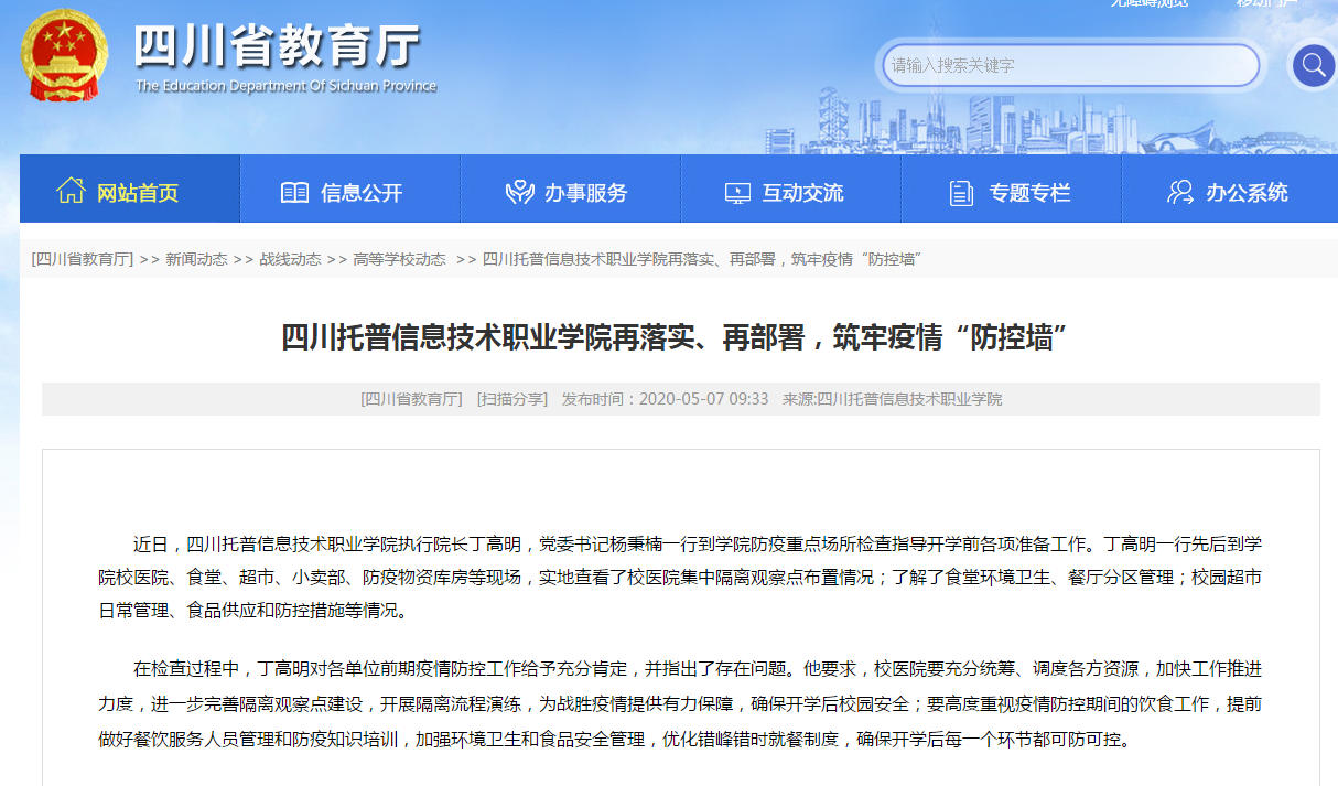 四川省教育厅 | 四川托普信息技术职业学院再落实、再部署,筑牢疫情“防控墙”