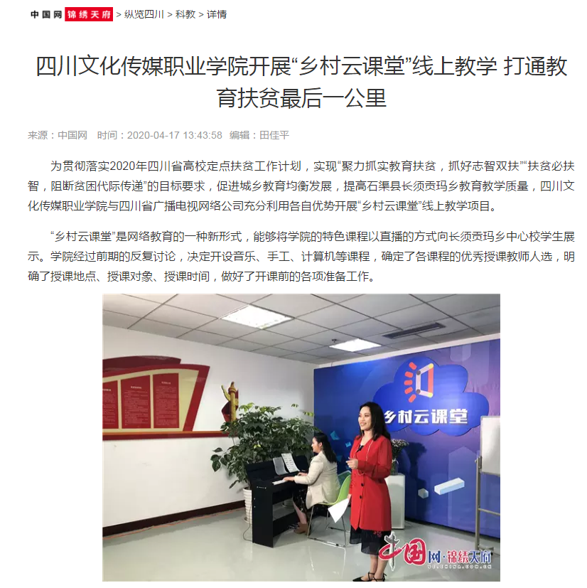 中国网锦绣天府 | 四川文化传媒职业学院开展“乡村云课堂”线上教学 打通教育扶贫最后一公里