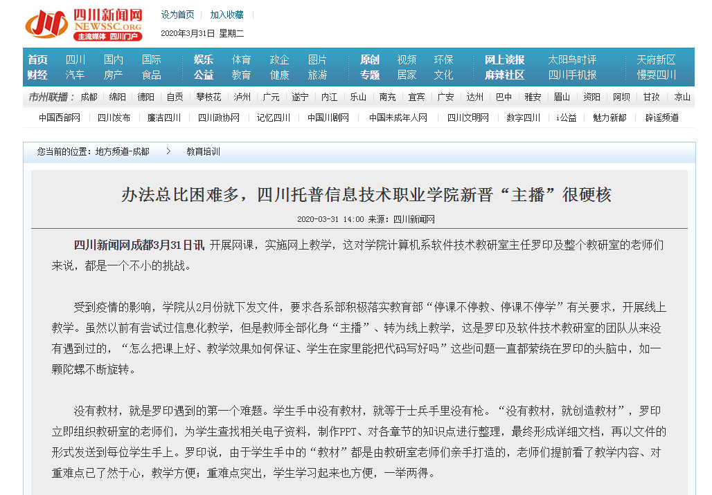 四川新闻网 | 办法总比困难多,四川托普信息技术职业学院新晋“主播”很硬核
