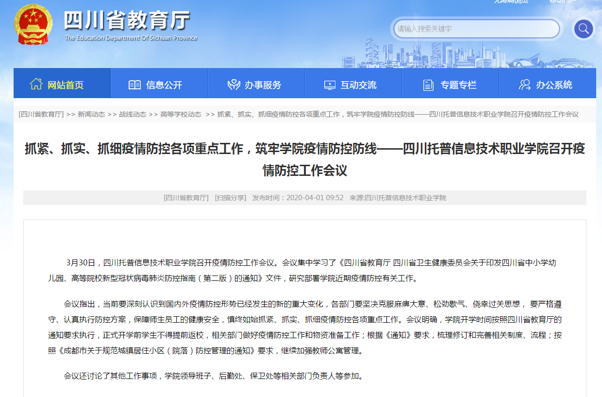 四川省教育厅 | 四川托普信息技术职业学院召开疫情防控工作会议