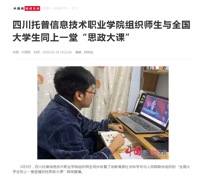 中国网锦绣天府 | 四川托普信息技术职业学院组织师生与全国大学生同上一堂“思政大课”