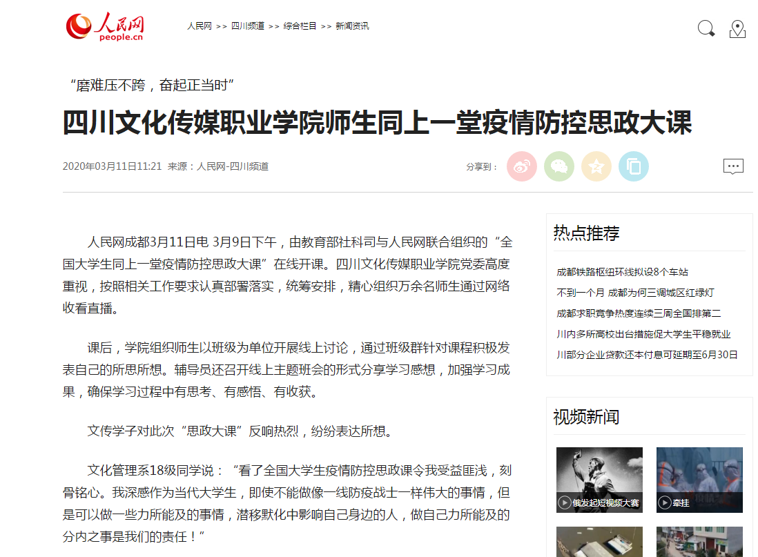人民网四川频道 | 四川文化传媒职业学院师生同上一堂疫情防控思政大课