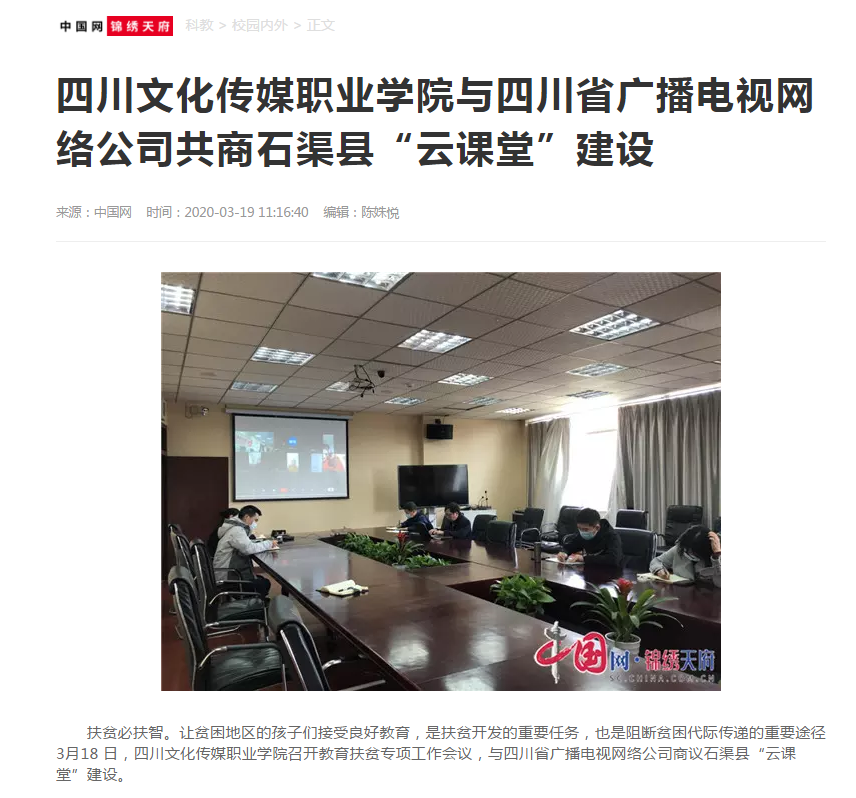 中国网锦绣天府 | 四川文化传媒职业学院与四川省广播电视网络公司共商石渠县“云课堂”建设