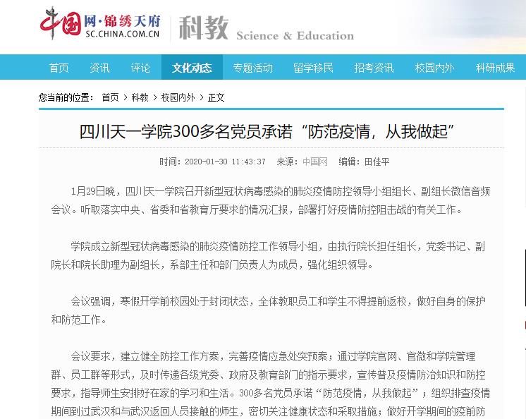 中国网锦绣天府 | 四川天一学院300多名党员承诺“防范疫情,从我做起”