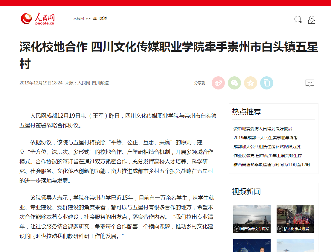 人民网四川频道 | 深化校地合作 四川文化传媒职业学院牵手崇州市白头镇五星村