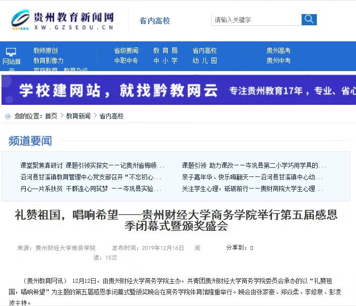 贵州教育新闻网 | 礼赞祖国,唱响希望——贵州财经大学商务学院举行第五届感恩季闭幕式暨颁奖盛会