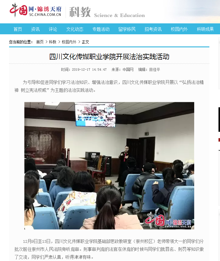 中国网锦绣天府 | 四川文化传媒职业学院开展法治实践活动