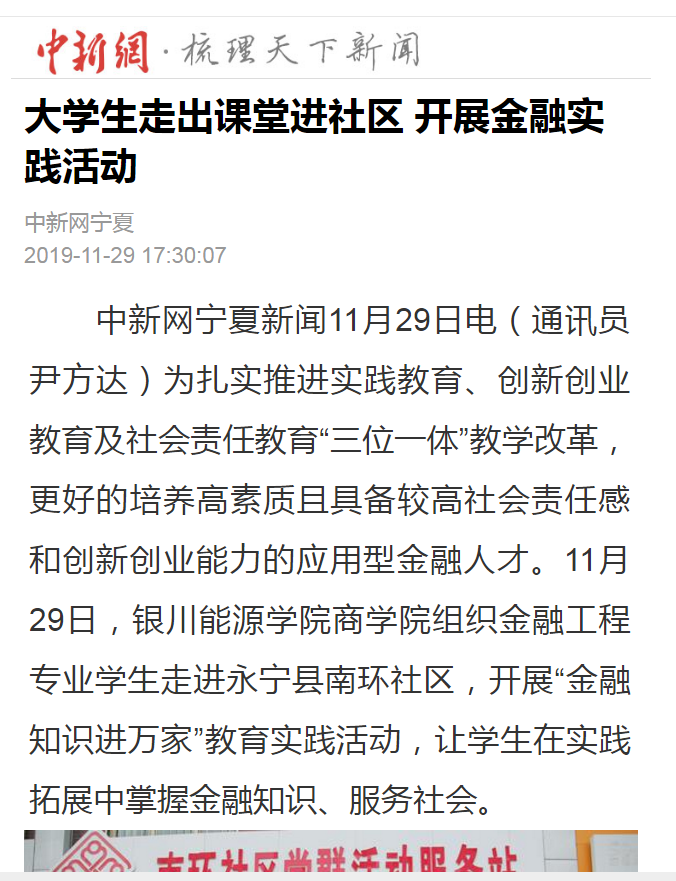 中新网宁夏 | 大学生走出课堂进社区 开展金融实践活动 | 银川能源学院