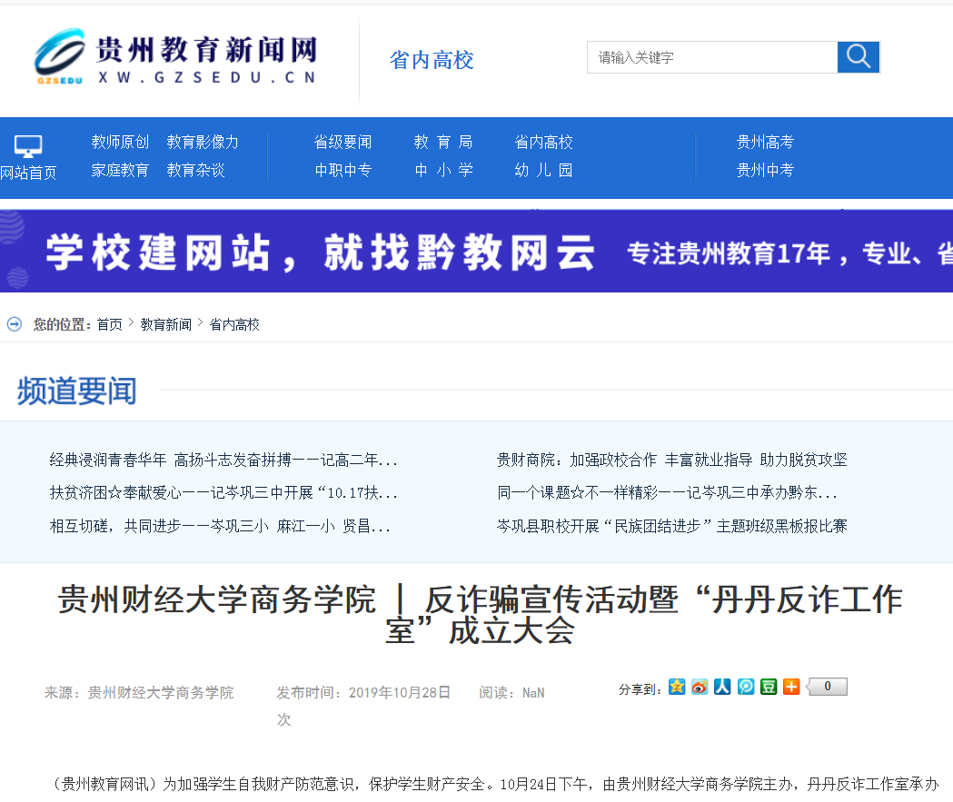贵州教育新闻网 | 贵州财经大学商务学院 | 反诈骗宣传活动暨“丹丹反诈工作室”成立大会