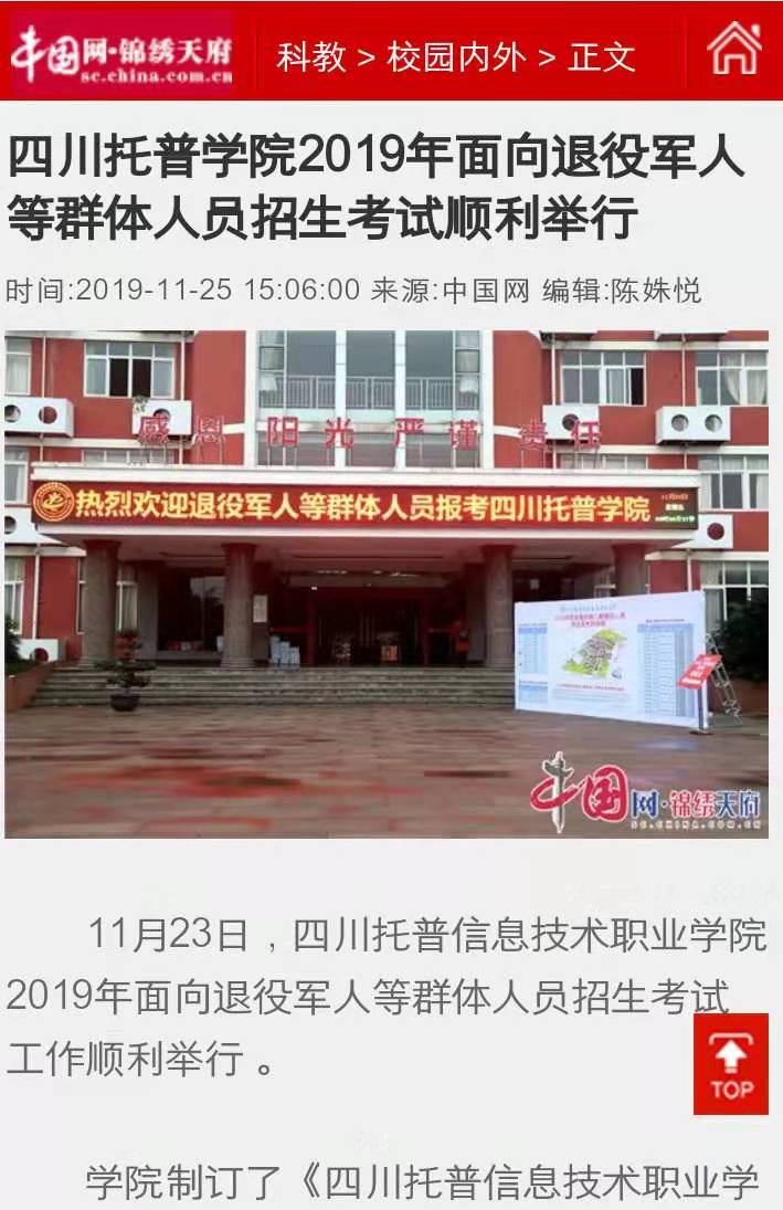 中国网锦绣天府 | 四川托普信息技术职业学院2019年面向退役军人等群体人员招生考试顺利举行