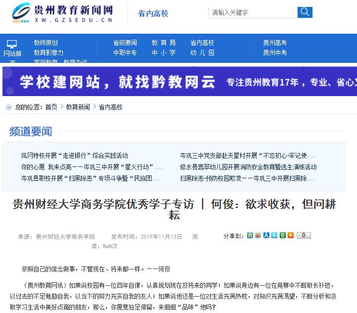 贵州教育新闻网 | 贵州财经大学商务学院优秀学子专访 | 何俊:欲求收获,但问耕耘