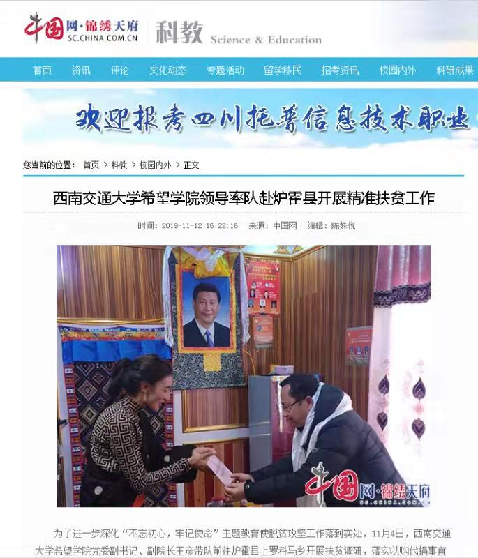 中国网锦绣天府 | 西南交通大学希望学院领导率队赴炉霍县开展精准扶贫工作