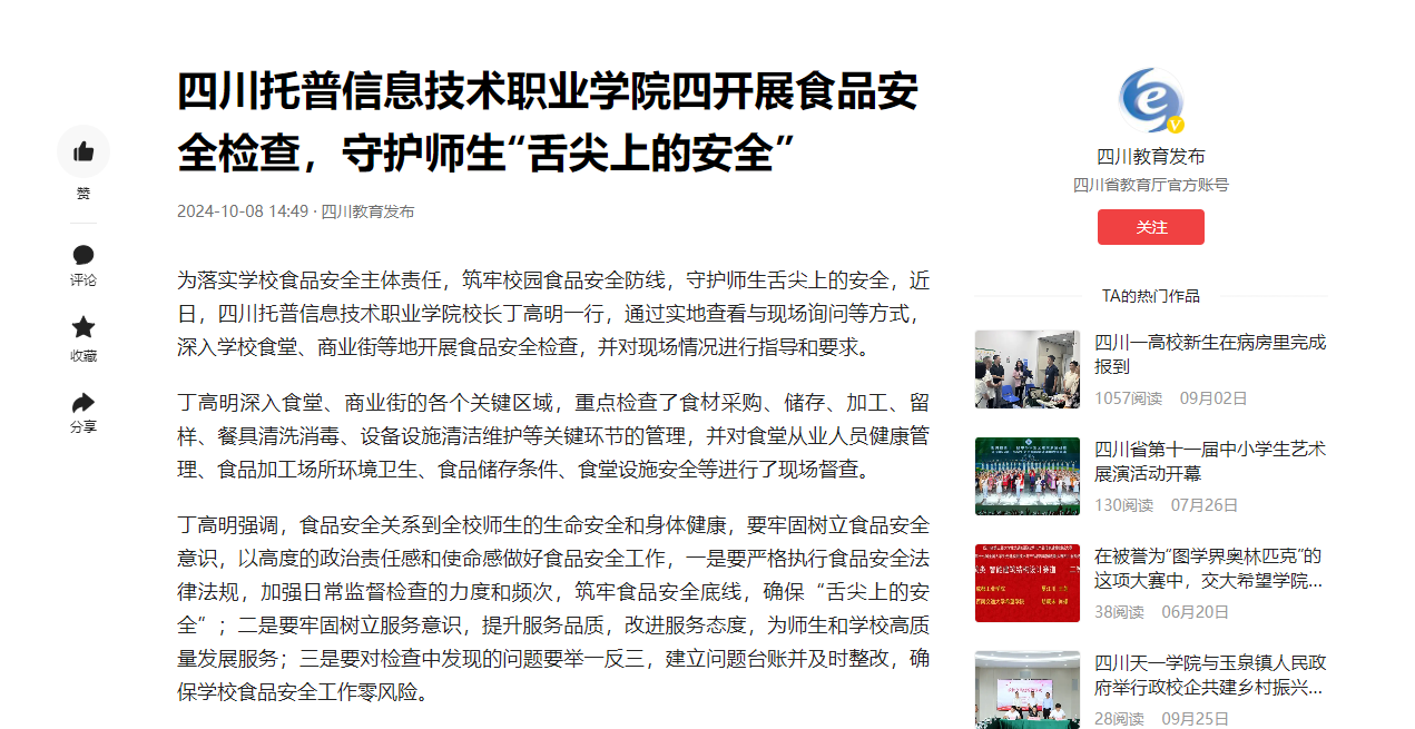 四川教育发布 | 四川托普信息技术职业学院开展食品安全检查,守护师生“舌尖上的安全”