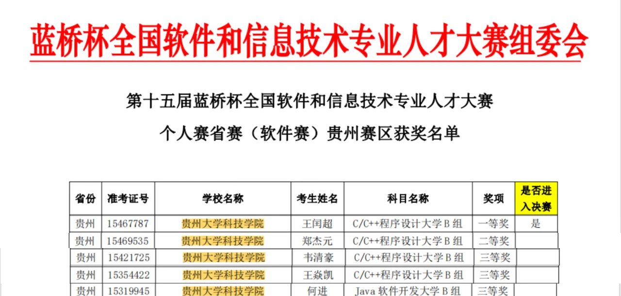 贵州黔南科技学院学子在第十五届“蓝桥杯”全国软件和信息技术专业人才大赛贵州赛区中获奖